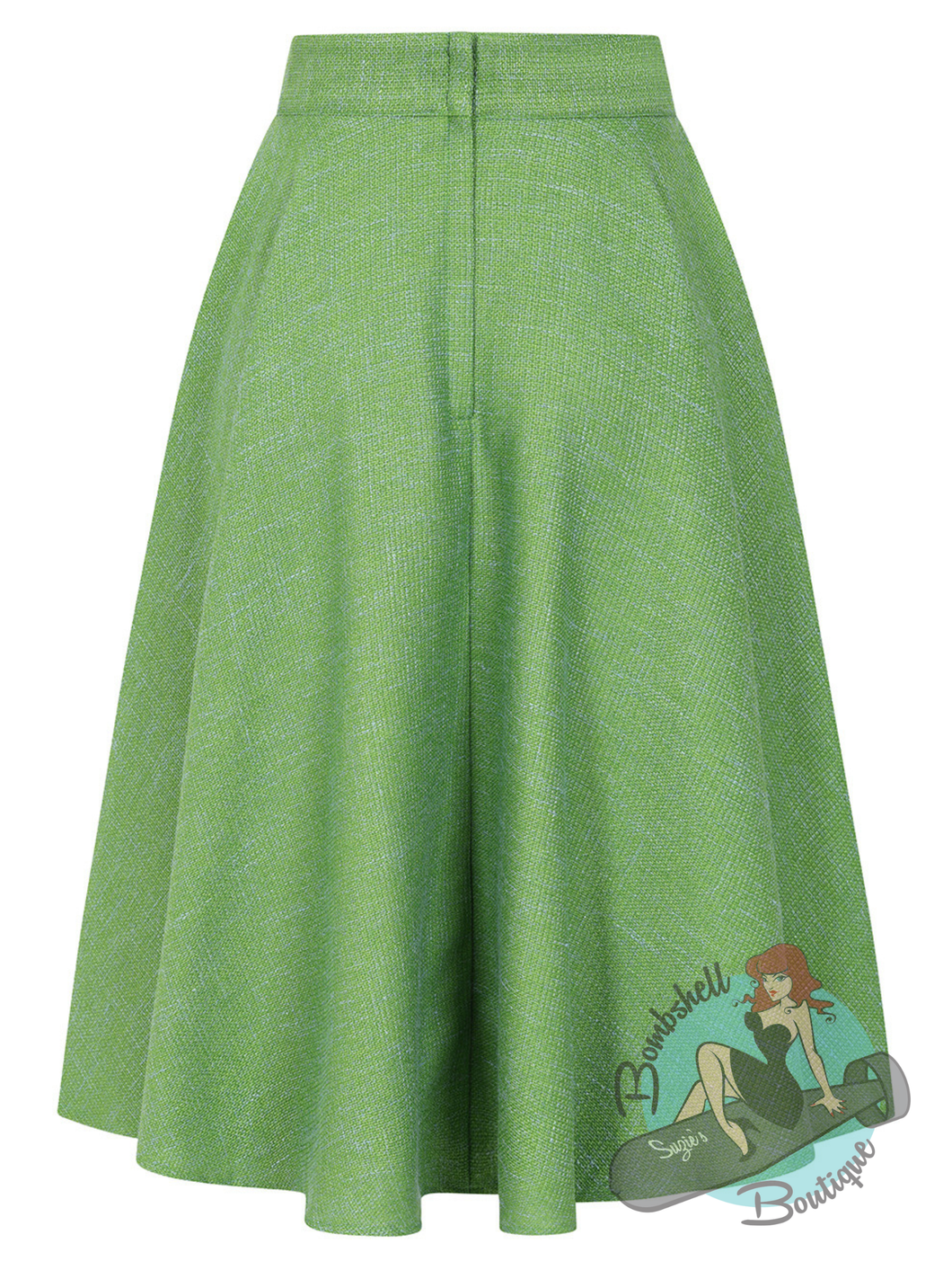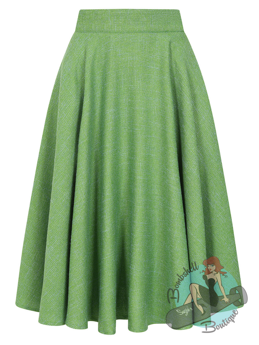 Twirl into Spring with the Banned Retro Cary Swing Skirt. This 1950's inspired full circle beauty in lush woven green fabric is designed to move with you, delivering that signature swing and swish that made the era unforgettable. The 2" waistband fastens with a back zip closure and the sideseams hide handy pockets. Whether you're hitting a rockabilly night or just want to add some old-school sass to your everyday look, this skirt is your ticket to timeless fun. Pair with our Audrey Top for a perfect, easy, everyday pinup look!